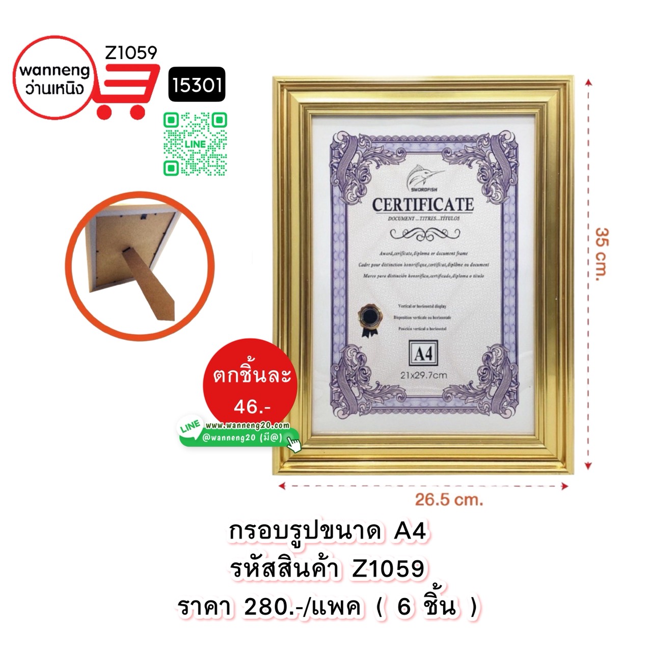 Z1059 กรอบรูปขนาด A4 15301 1 แพค ( 6 ชิ้น )