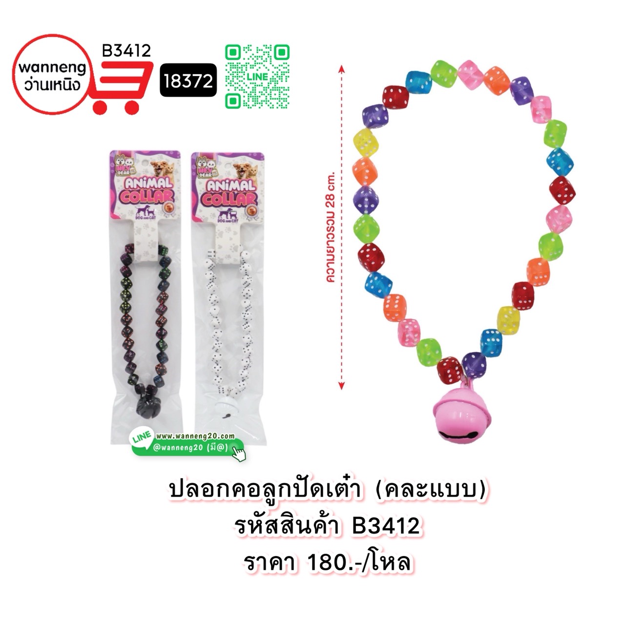 B3412 ปลอกคอลูกปัดเต๋า คละแบบ 18372 1 โหล