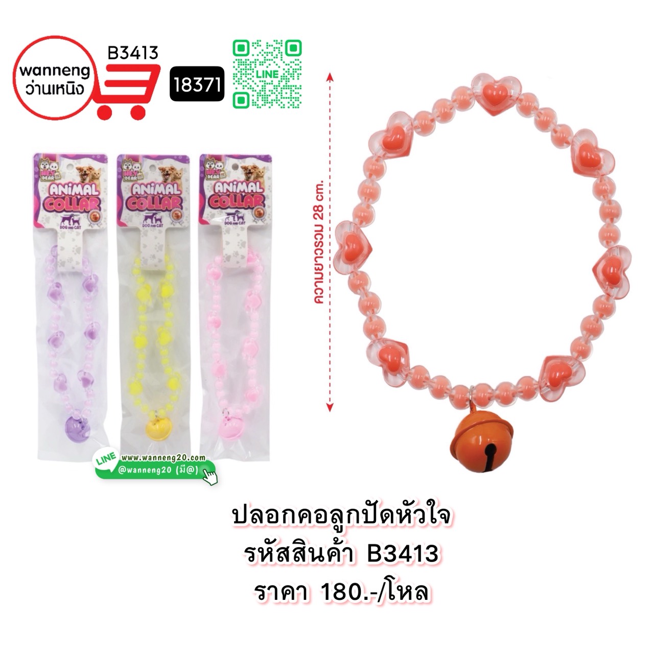 B3413 ปลอกคอลูกปัดหัวใจ 18371 1 โหล