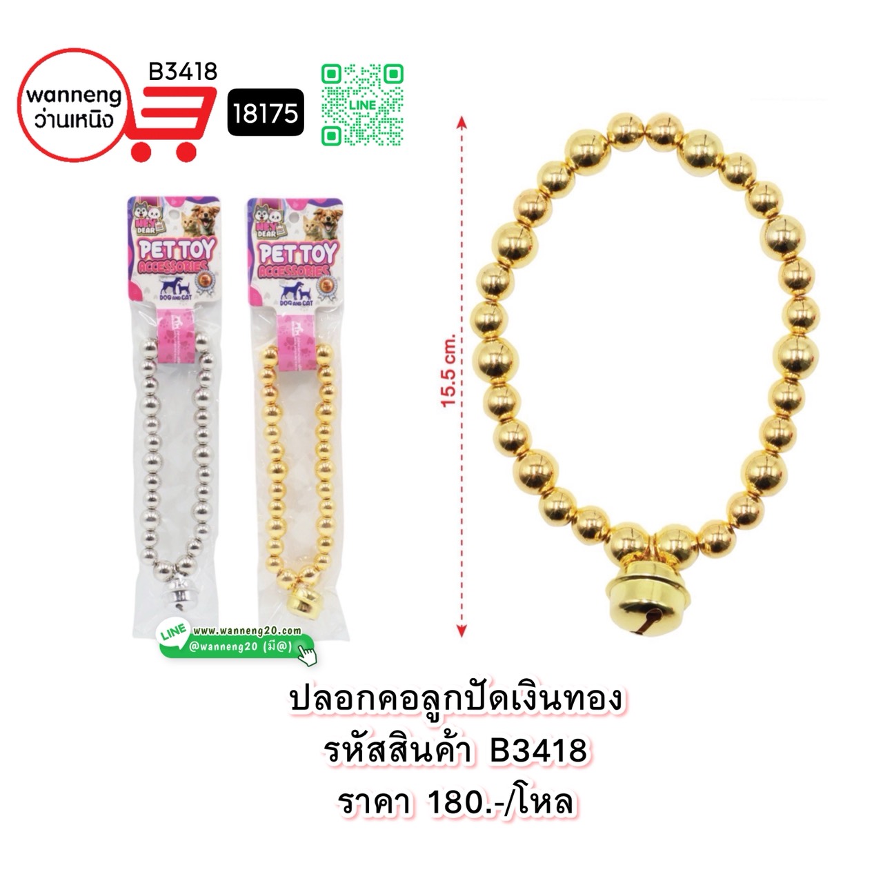 B3415 ปลอกคอเชือกกระดิ่ง 18254 1 โหล