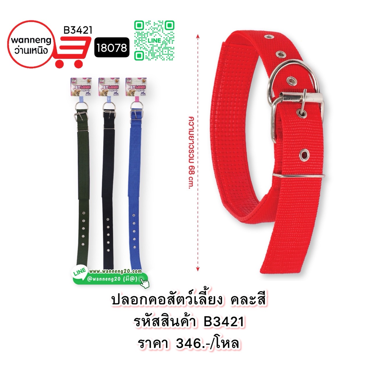 B3421 ปลอกคอสัตว์เลี้ยง คละสี 18078 1 โหล