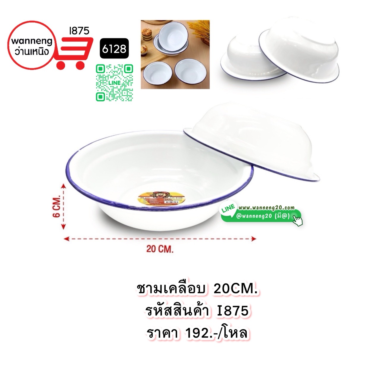 I875 ชามเคลือบ 20 CM. 6128 1 โหล