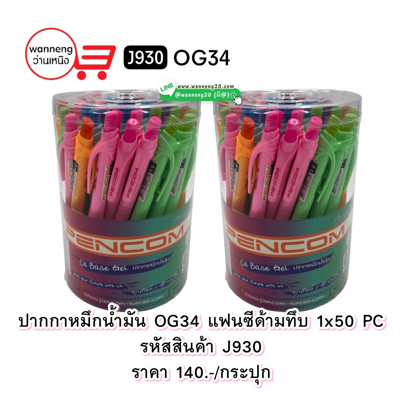 J930 ปากกาหมึกน้ำมัน OG34 แฟนซีด้ามทึบ 1x50 1กระปุก
