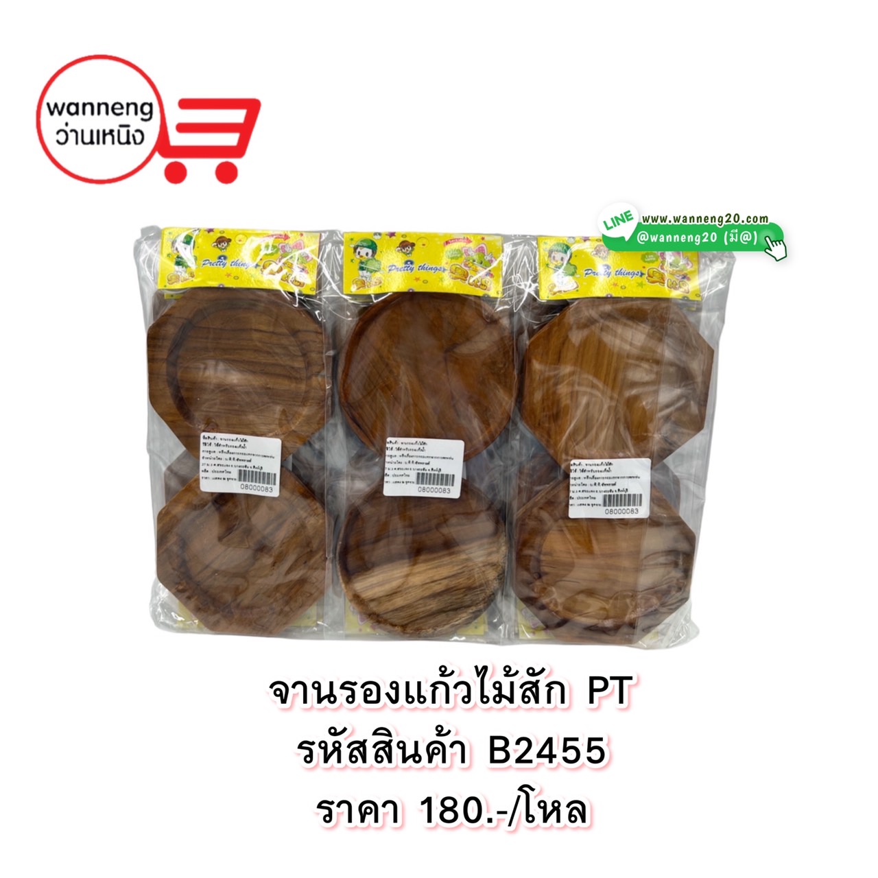 B2455 จานรองแก้วไม้สัก PT 1 โหล