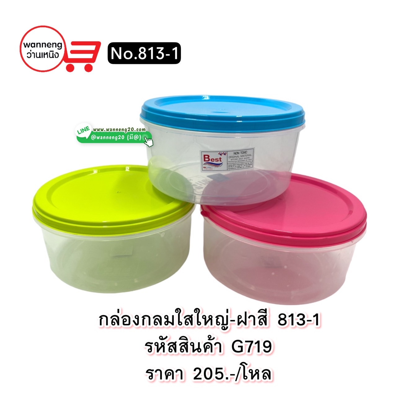 G719 กล่องกลมใสใหญ่-ฝาสี 813-1 1 โหล