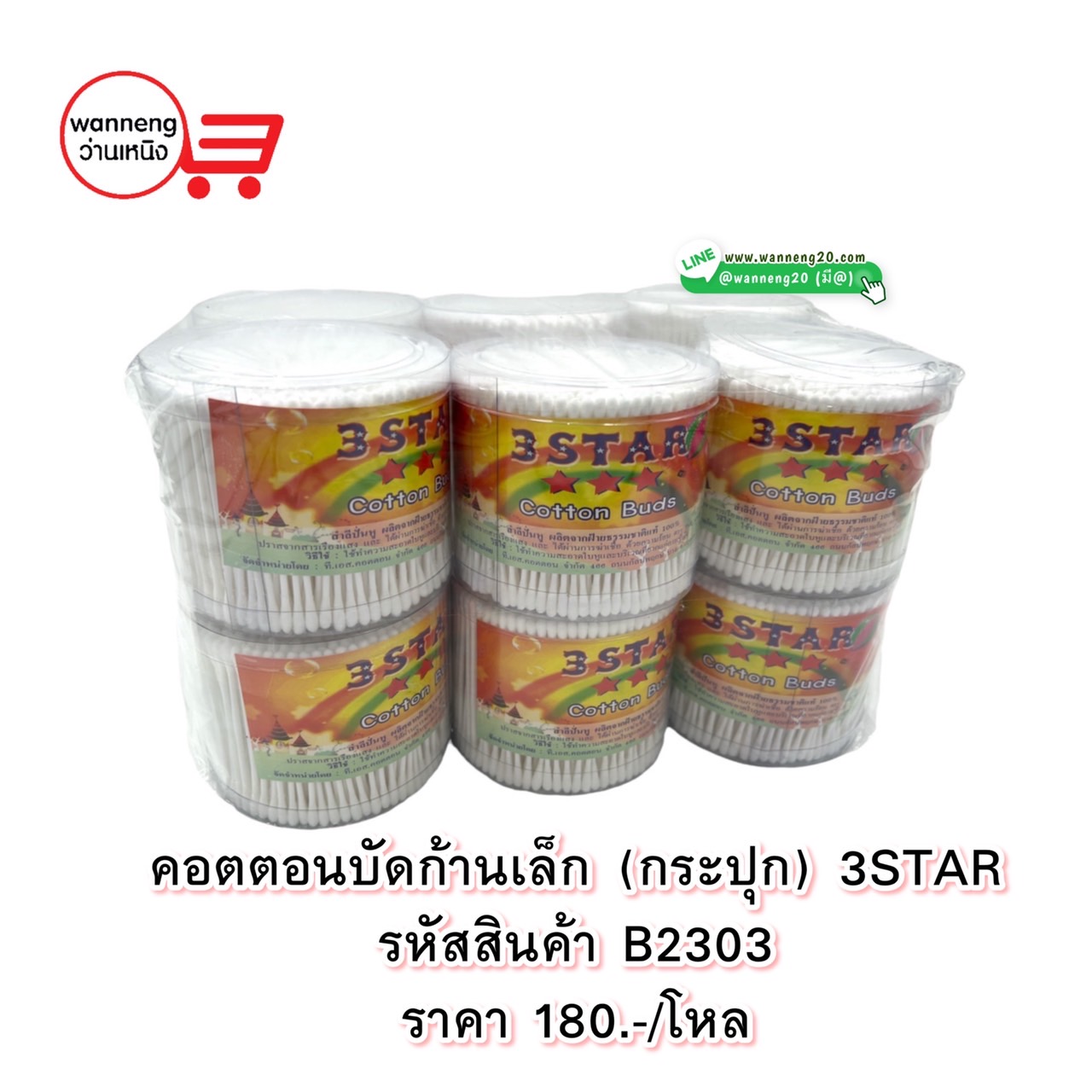 B2303 คอตตอนบัดก้านเล็ก (กระปุก) 3STAR 1 โหล
