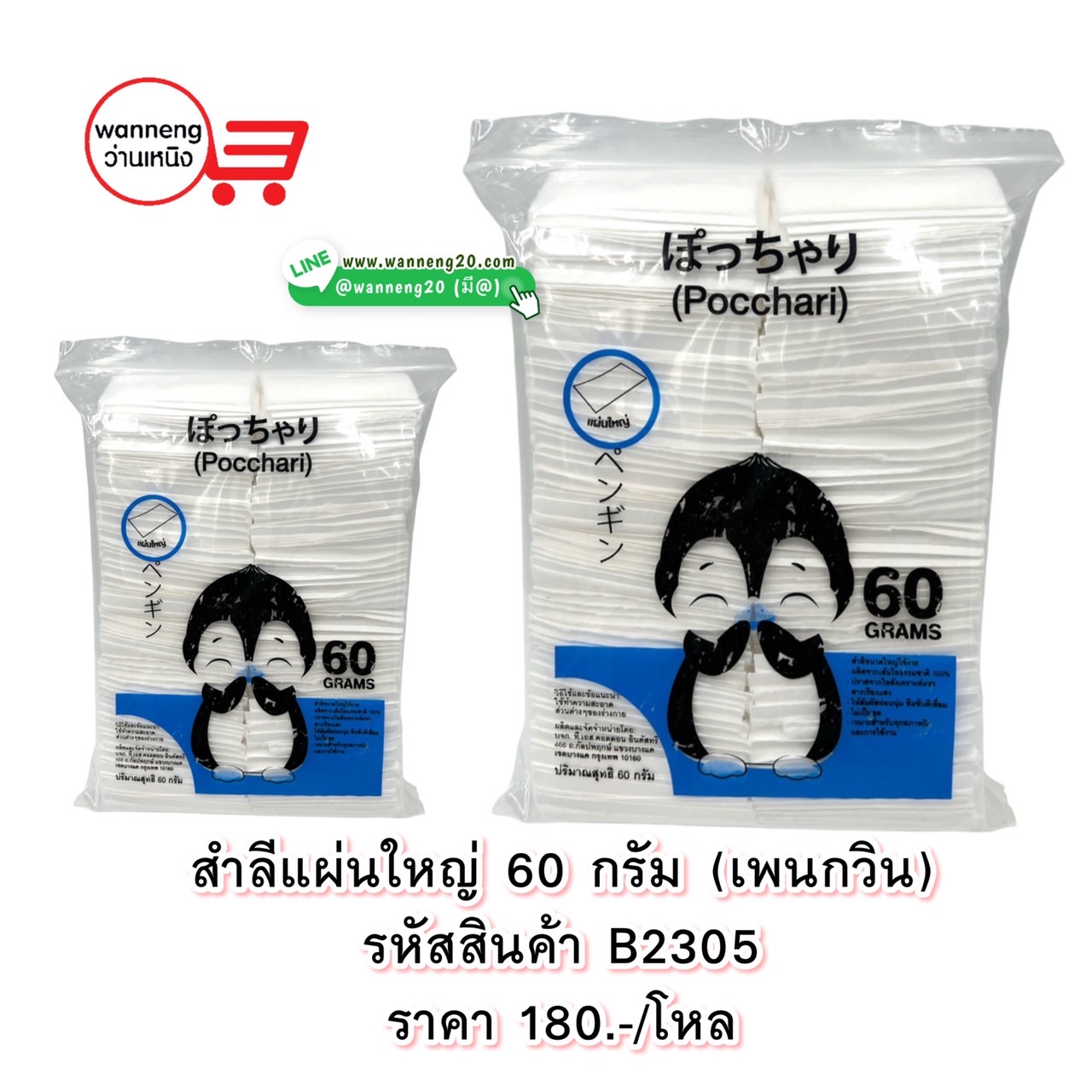 B2305 สำลีแผ่นใหญ่ 60 กรัม (เพนกวิน) 1 โหล