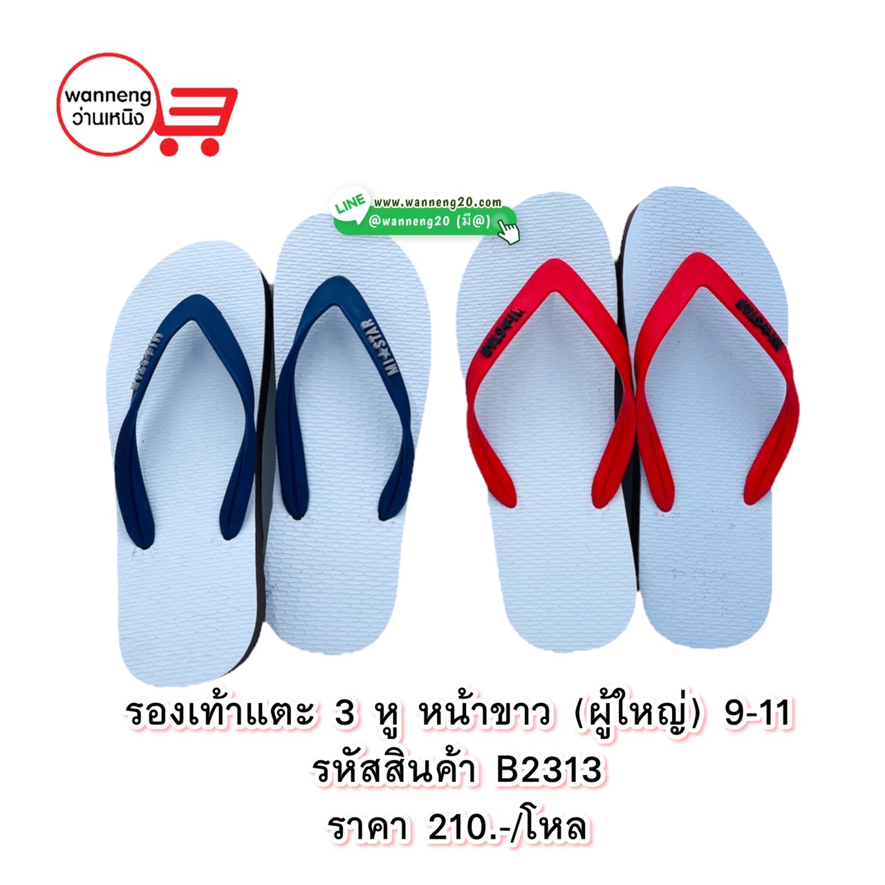 B2313 รองเท้าแตะ 3 หู หน้าขาว (ผู้ใหญ่) 9-11 1 โหล