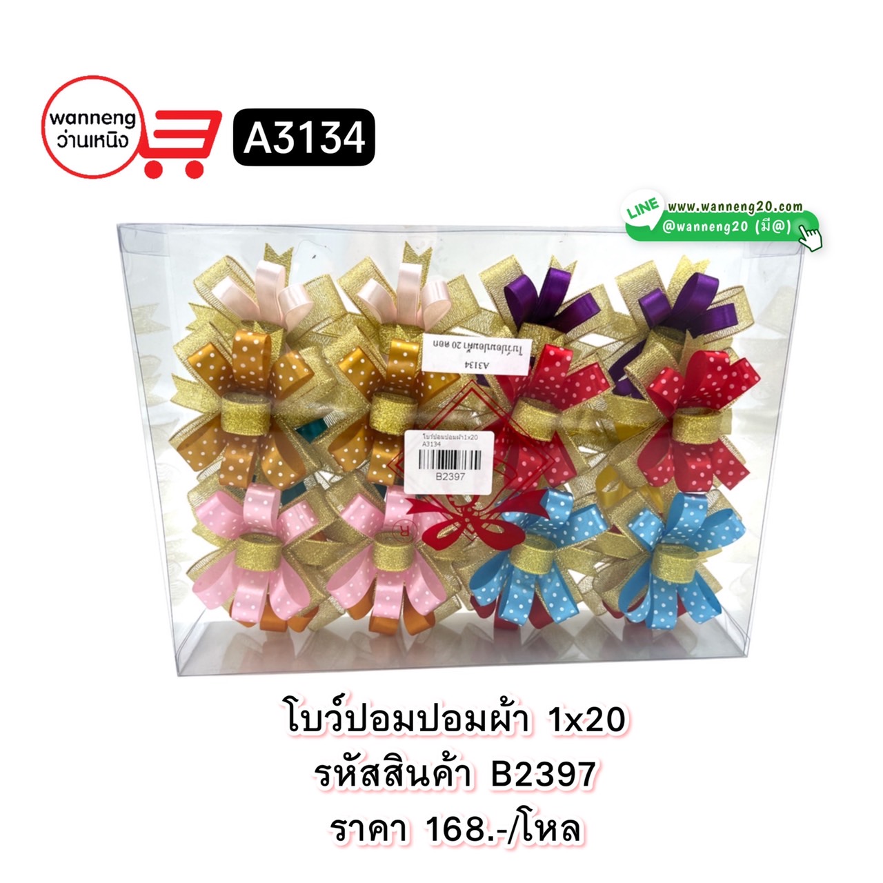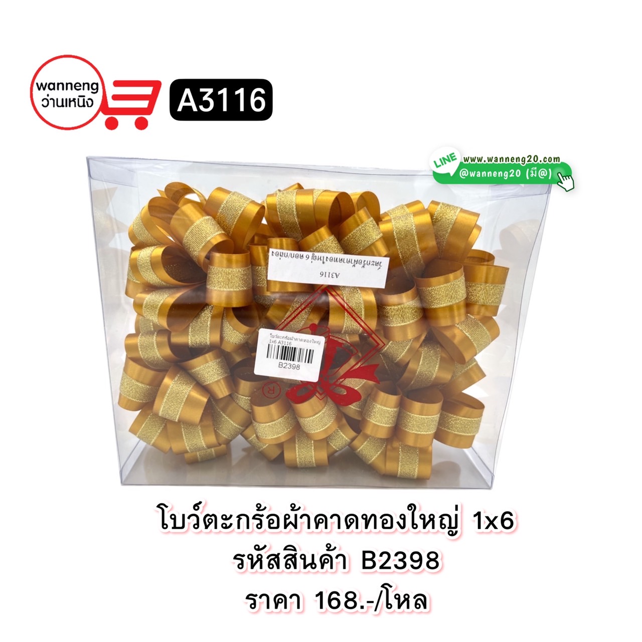 B2398 โบว์ตะกร้อผ้าคาดทองใหญ่ 1x6 A3116 1 โหล