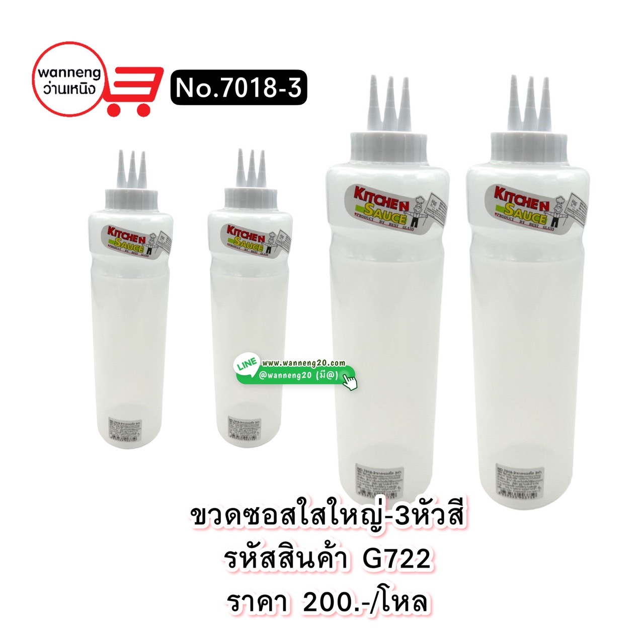 G722 ขวดซอสใสใหญ่ 3 หัวสีหวาน 7018-3 1 โหล
