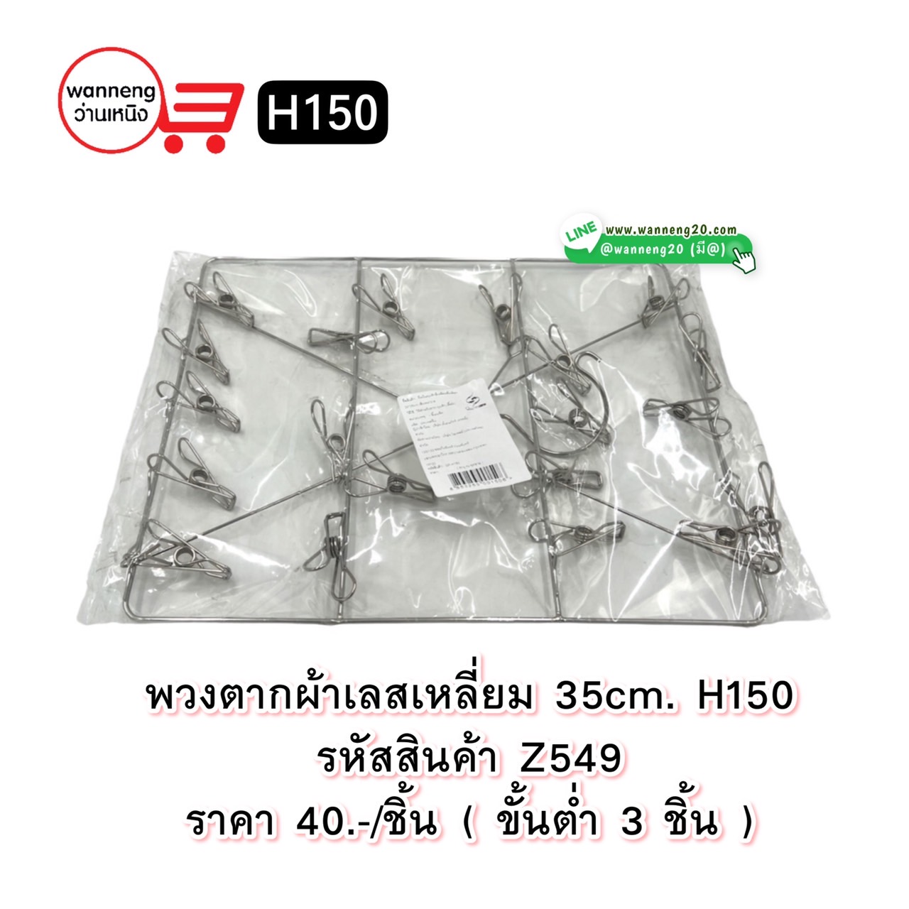 Z549 พวงตากผ้าเลสเหลี่ยม 35cm. H150 1 ชิ้น (ขั้นต่ำ 3 ชิ้น )