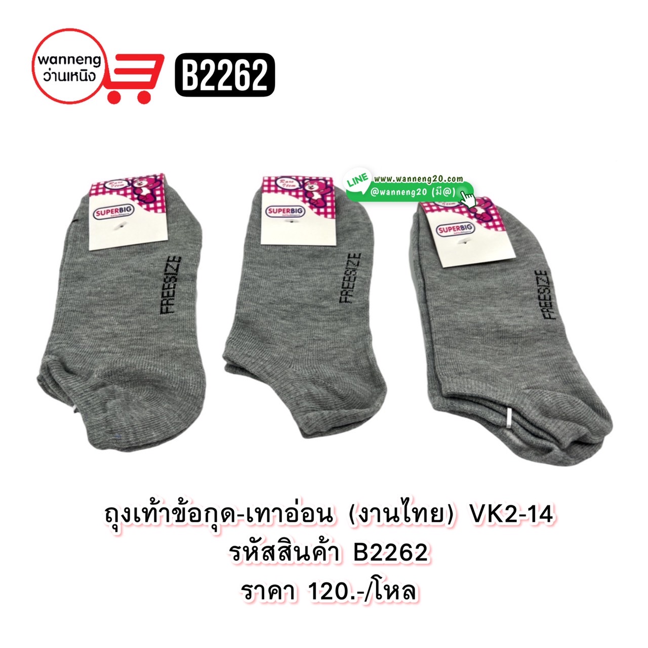B2262 ถุงเท้าข้อกุด-เทาอ่อน (งานไทย) VK2-14 1 โหล