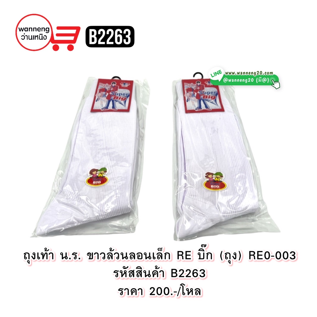 B2263 ถุงเท้า น.ร. ขาวล้วนลอนเล็ก RE บิ๊ก (ถุง) RE0-003 1 โหล