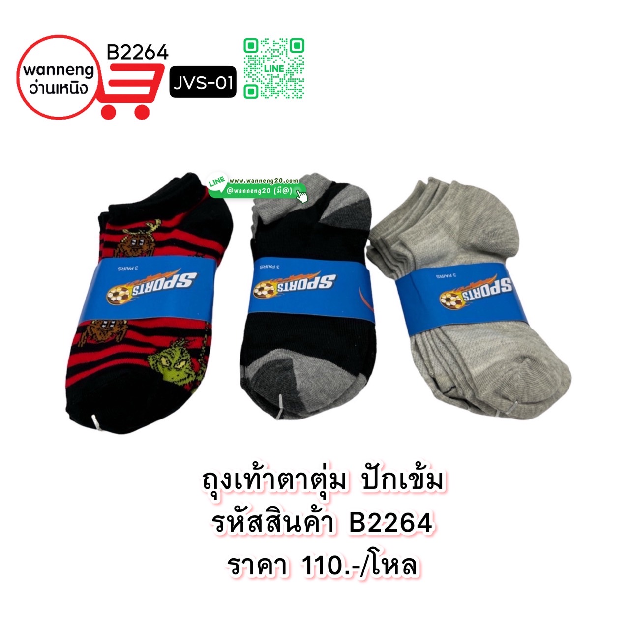 B2264 ถุงเท้าตาตุ่ม-ปักเข้ม JVS-01 1 โหล