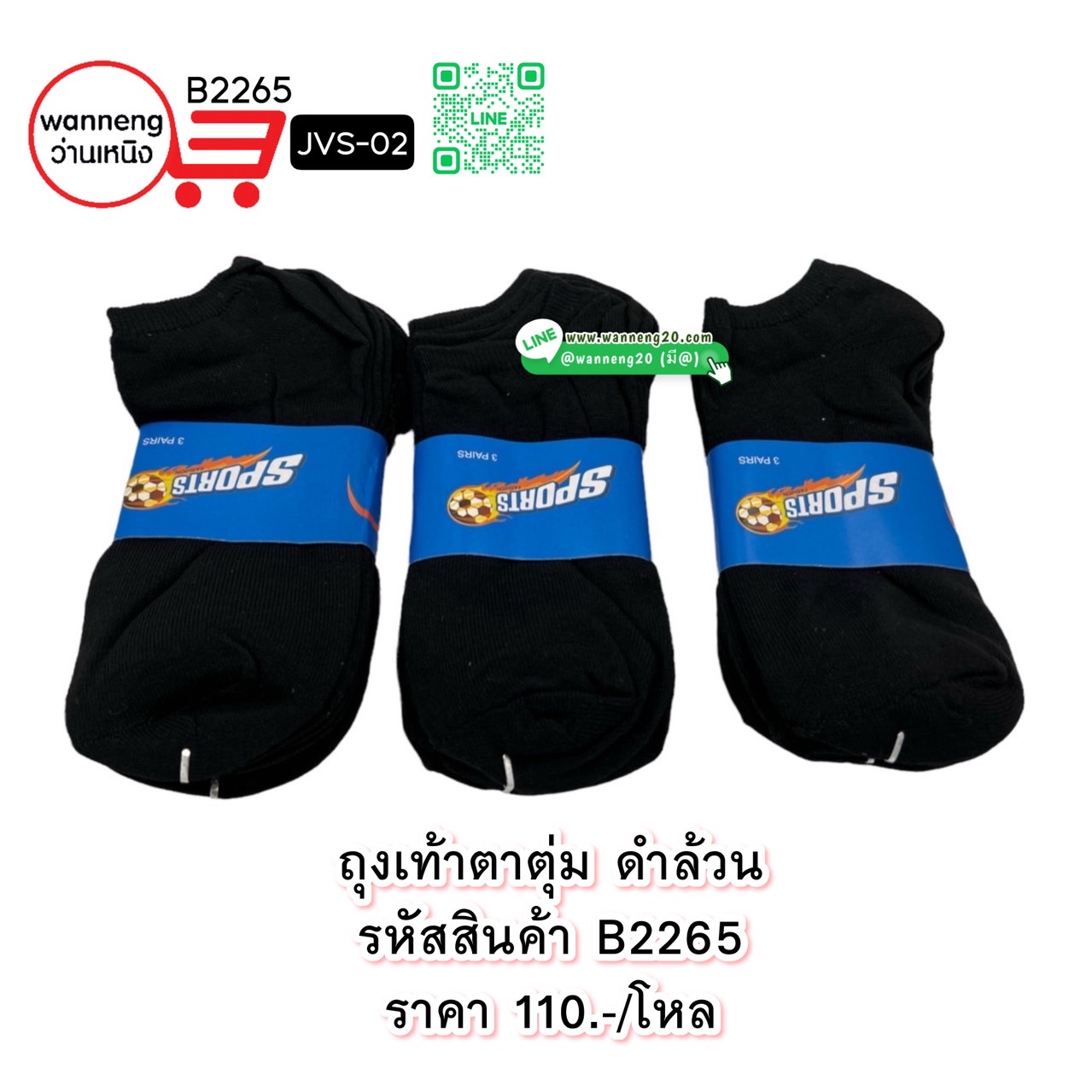 B2265 ถุงเท้าตาตุ่ม-ดำล้วน JVS-02 1 โหล