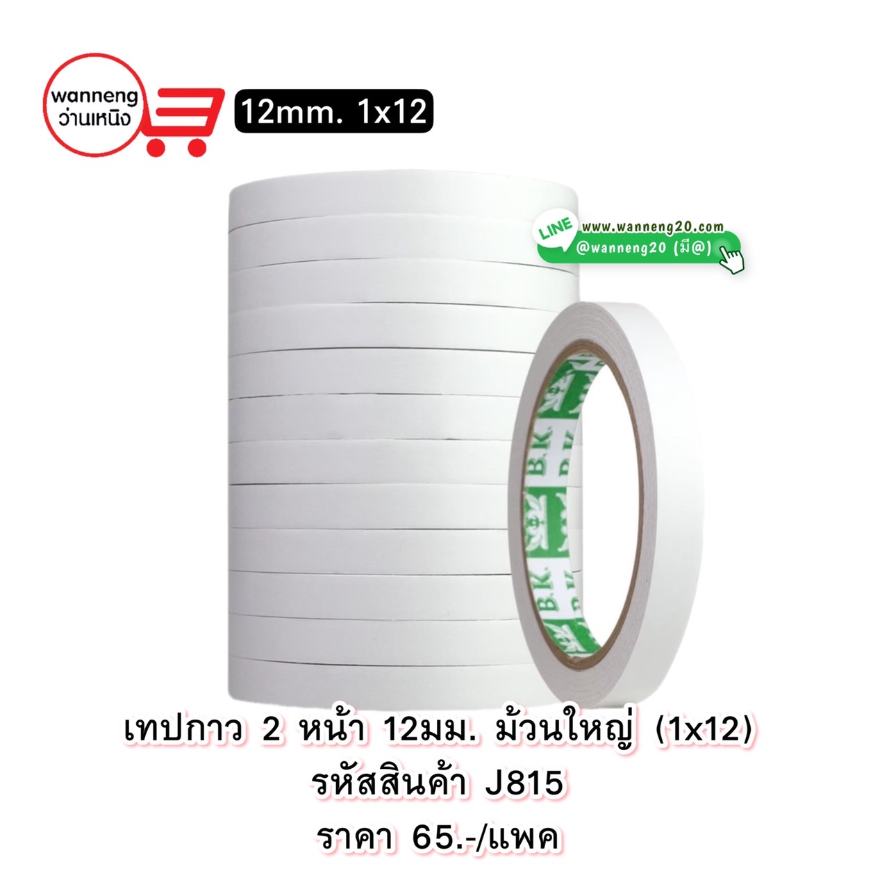 J815 เทปกาว2หน้า 12มม. ม้วนใหญ่ 1x12 1 แพค