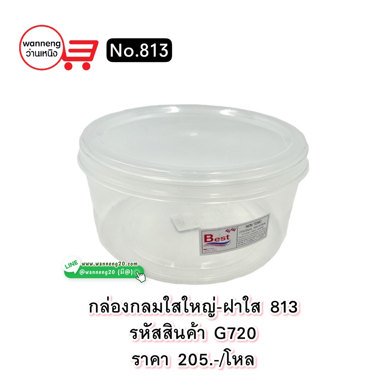 G720 กล่องกลมใสใหญ่-ฝาใส 813 1 โหล