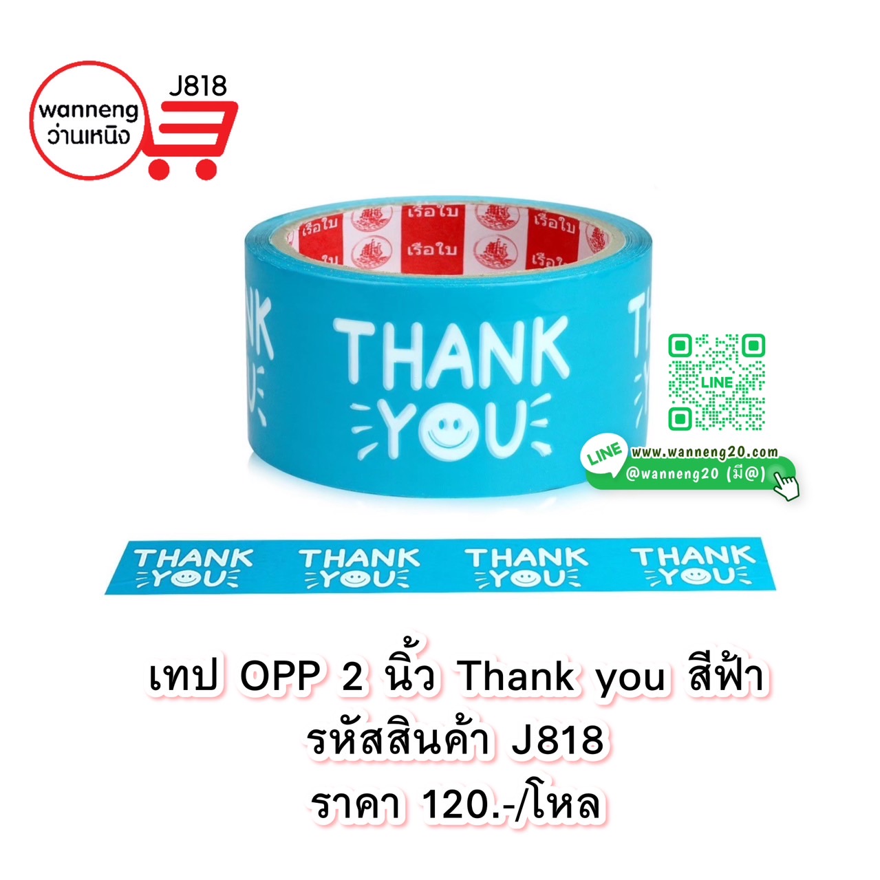 J818 เทปOPP 2 นิ้ว Thank you สีฟ้า 1 โหล