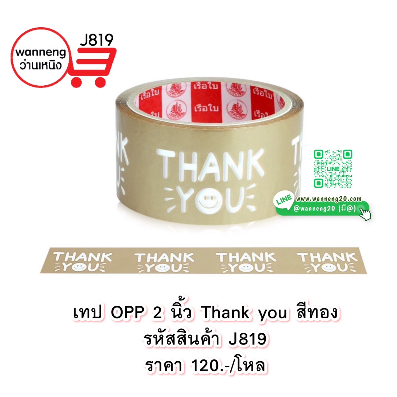 J819 เทปOPP 2 นิ้ว Thank you สีทอง 1 โหล