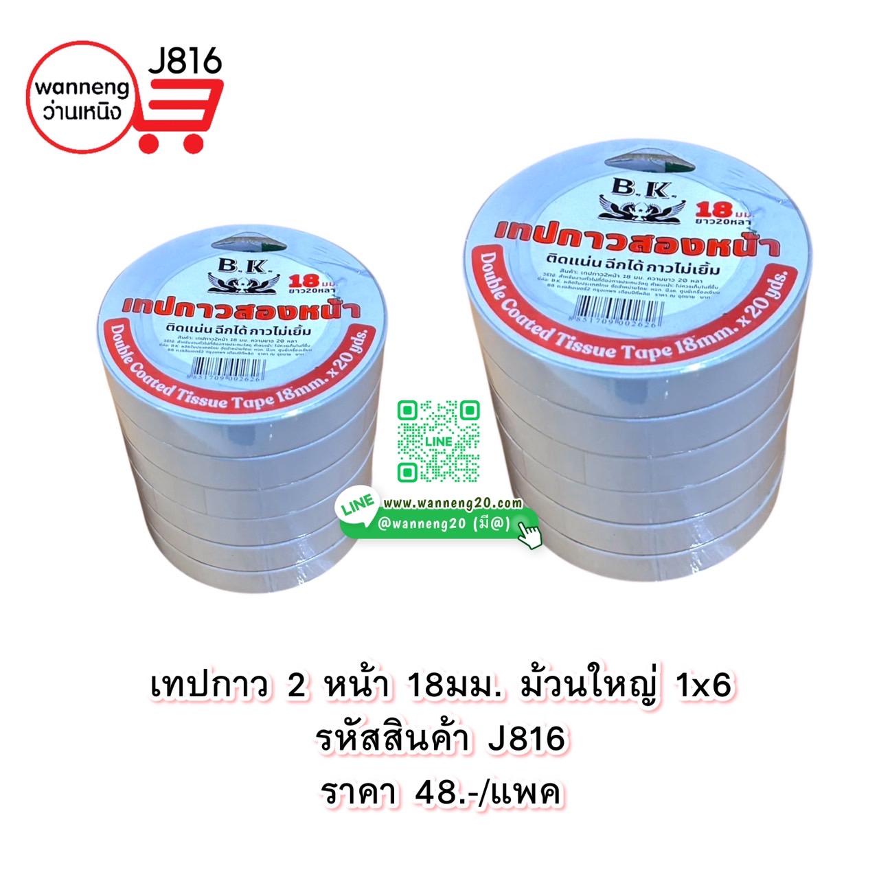 J816 เทปกาว2หน้า 18มม. ม้วนใหญ่ 1x6 1 แพค