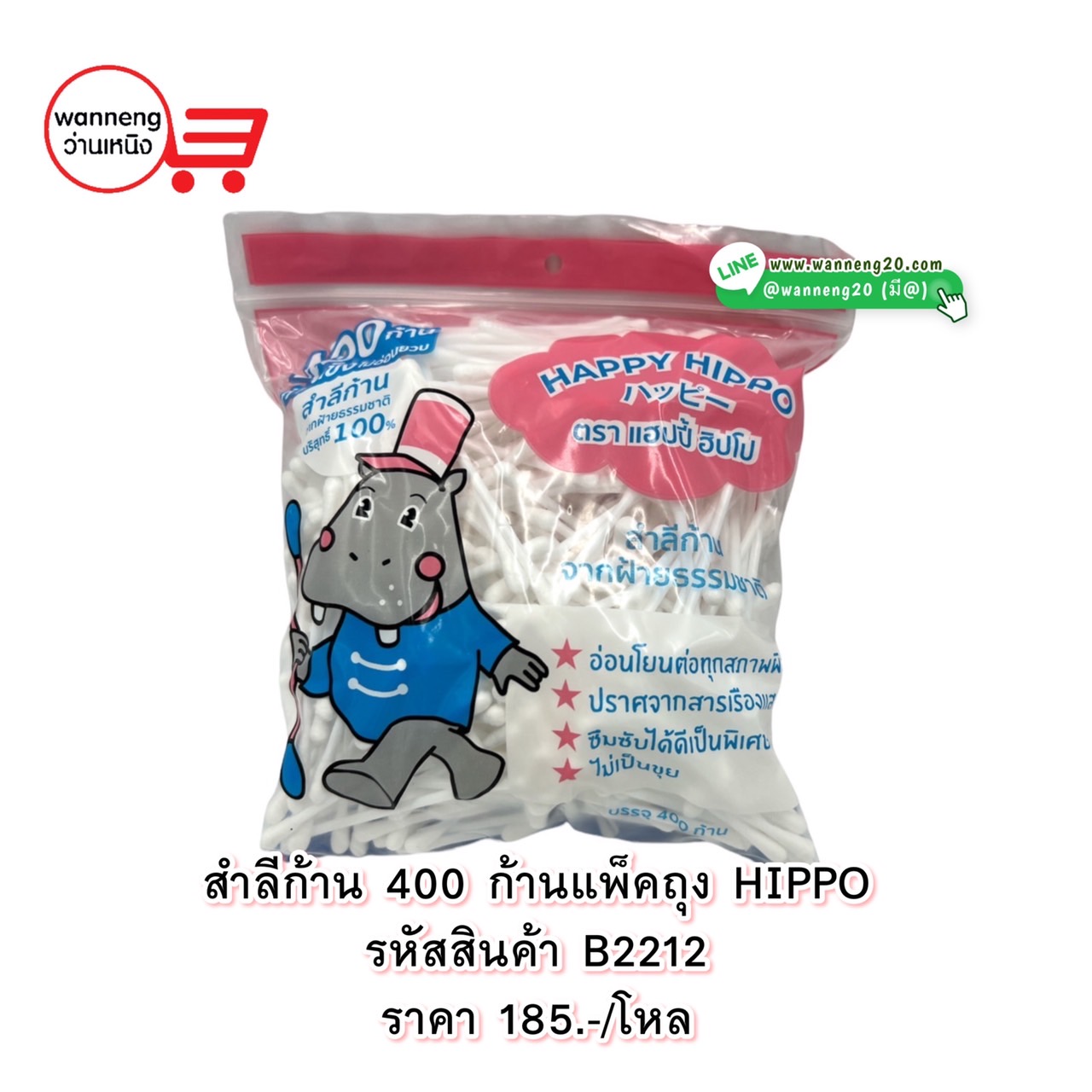 B2212 สำลีก้าน 400 ก้าน แพ็คถุง HIPPO 1 โหล