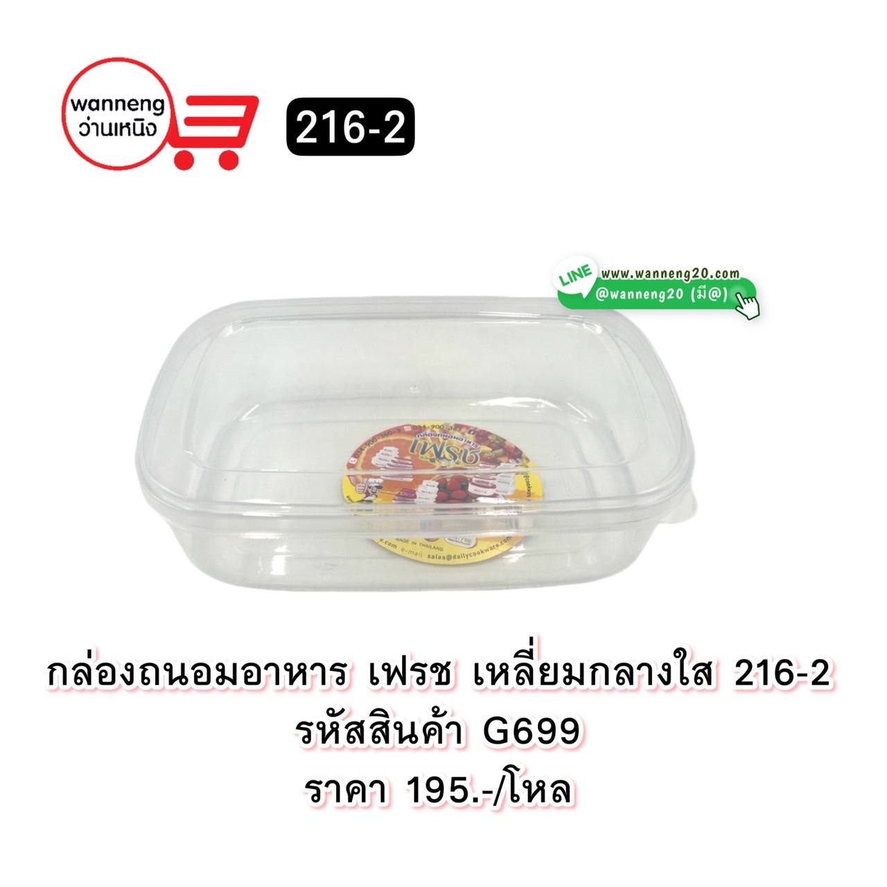 G699 กล่องถนอมอาหาร เฟรช เหลี่ยมกลางใส 216-2 1 โหล