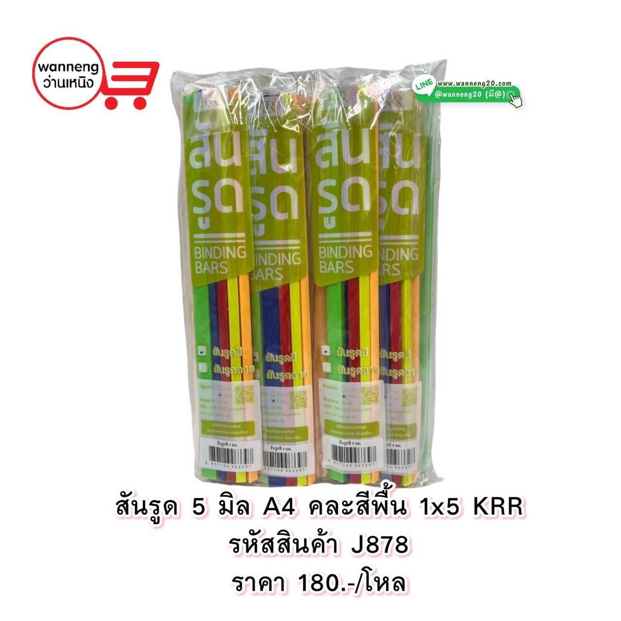 J878 สันรูด 5 มิล A4 คละสีพื้น 1x5 KRR 1 โหล