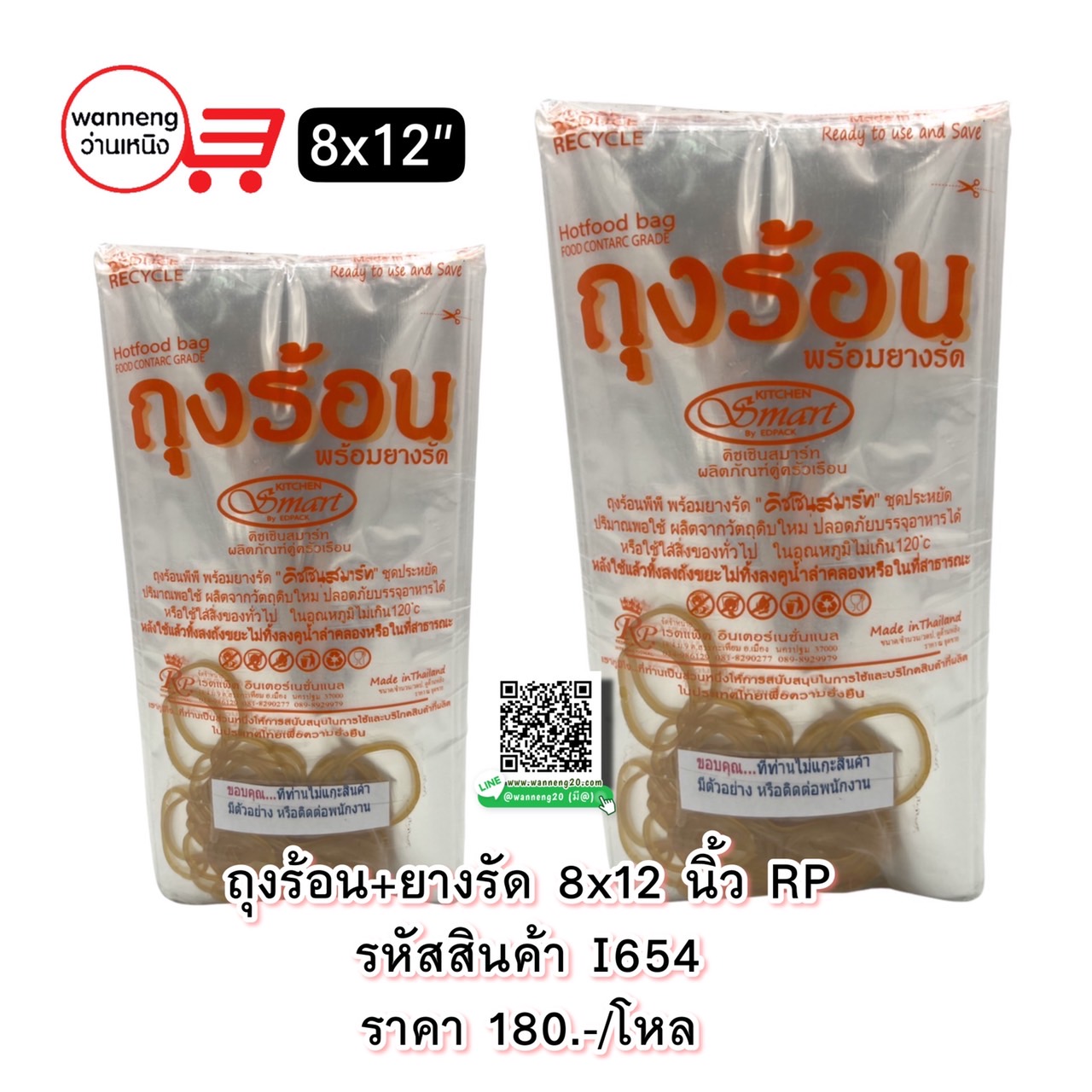 I654 ถุงร้อน+ยางรัด 8x12 นิ้ว RP 1 โหล