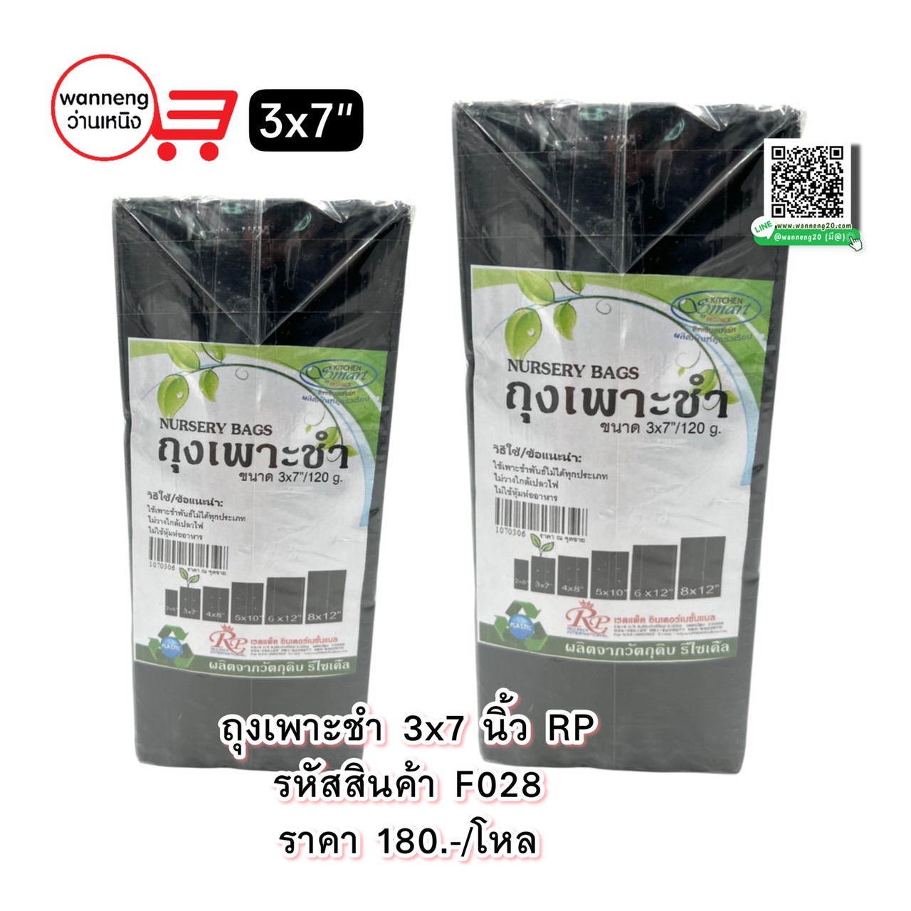F028 ถุงเพาะชำ 3x7 นิ้ว RP 1 โหล