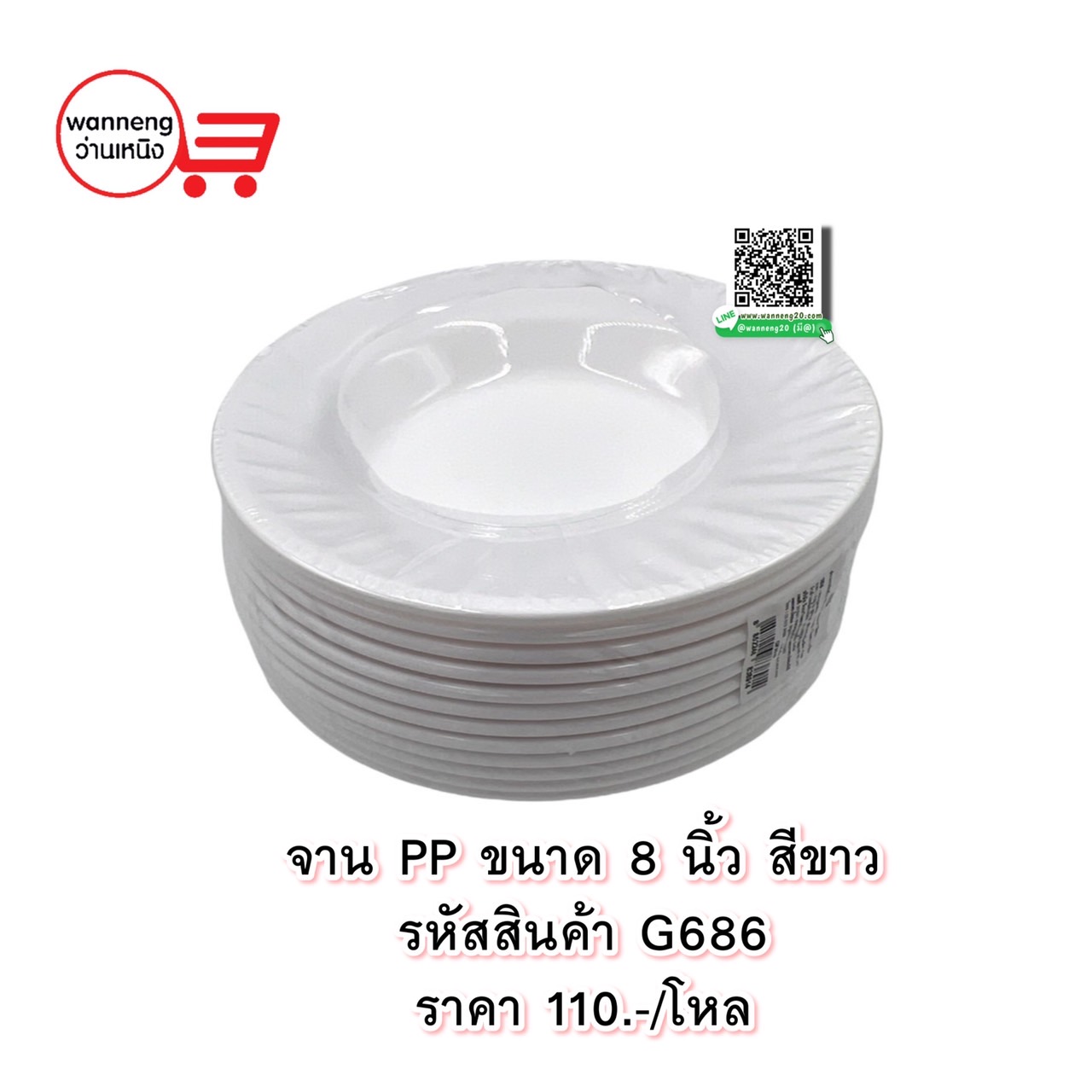 G686 จาน PP ขนาด 8 นิ้ว ขาว 1 โหล