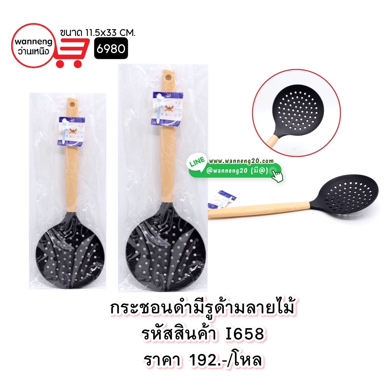 I658 กระชอนดำมีรูด้ามลายไม้ 6980 1 โหล