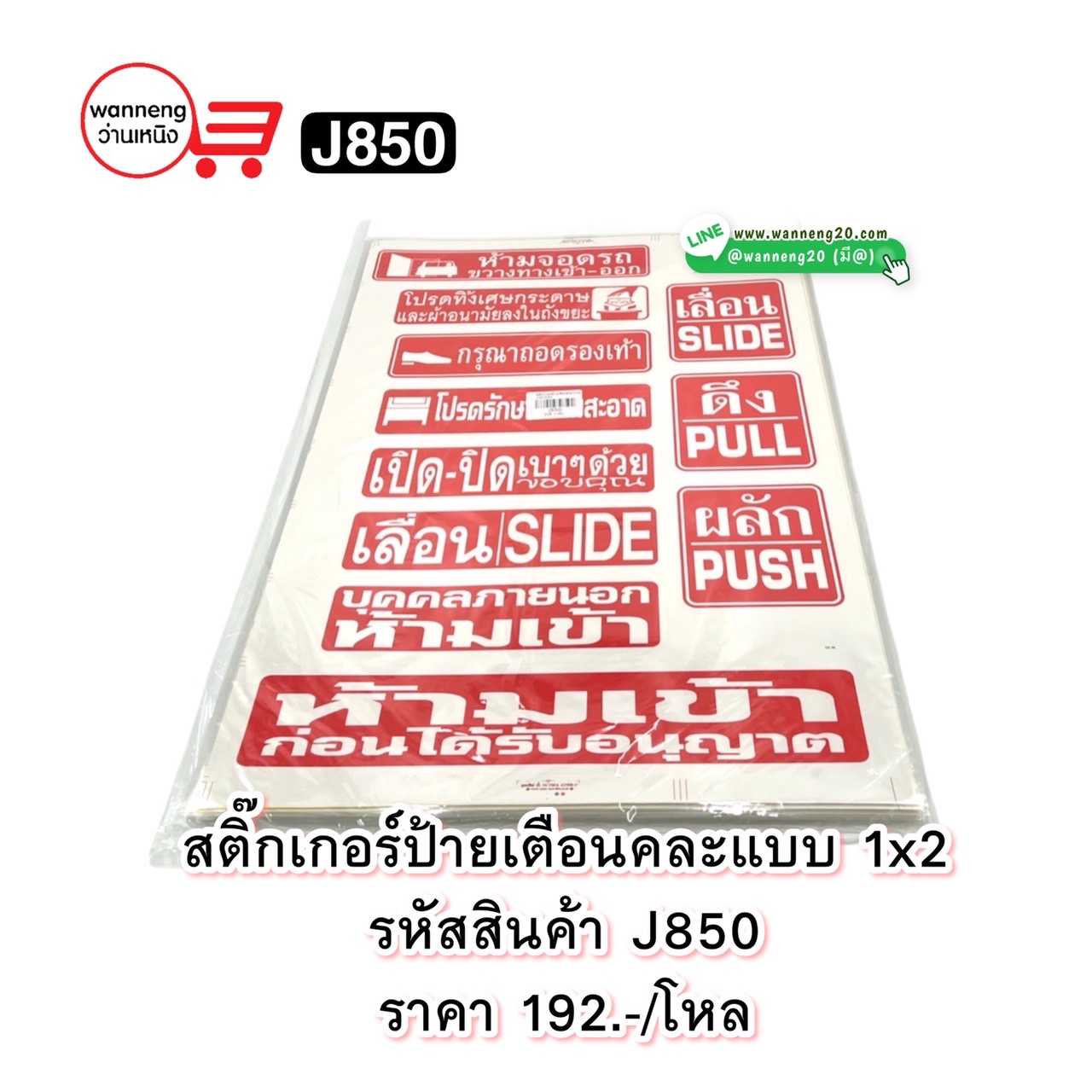 J850 สติ๊กเกอร์ป้ายเตือนคละแบบ 1x2 1 โหล