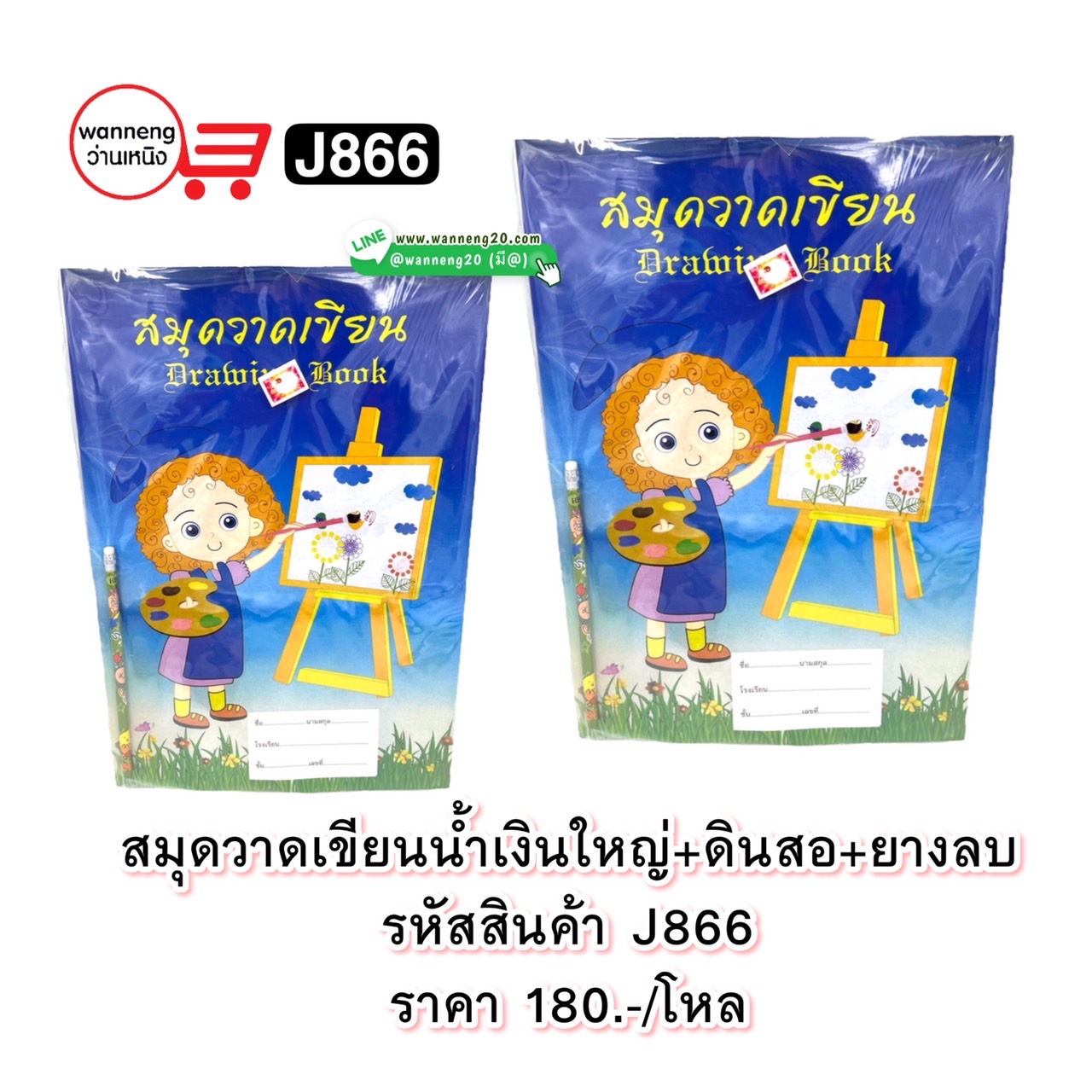 J866 สมุดวาดเขียนน้ำเงินใหญ่+ดินสอ+ยางลบ 1 โหล