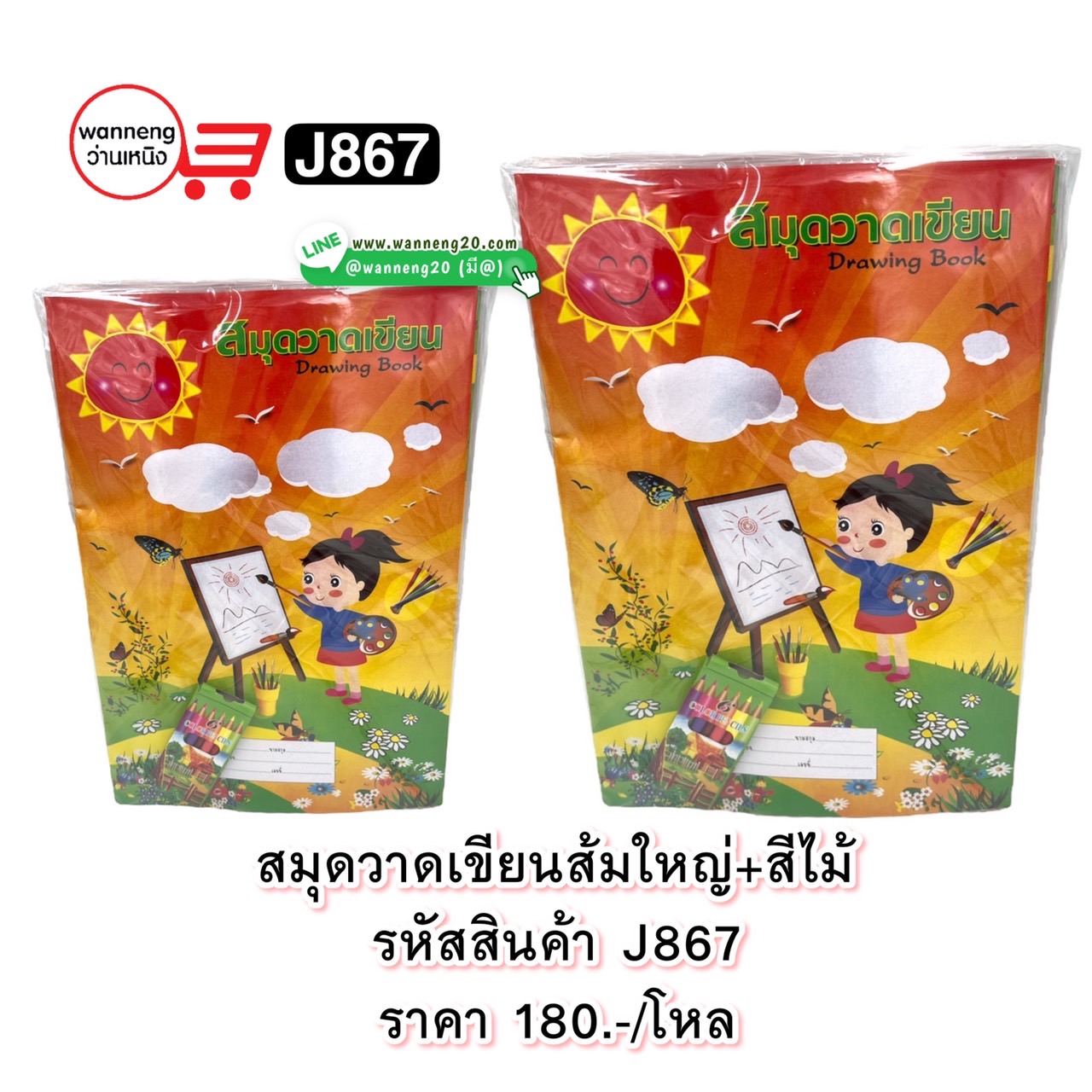 J867 สมุดวาดเขียนส้มใหญ่+สีไม้ 1 โหล
