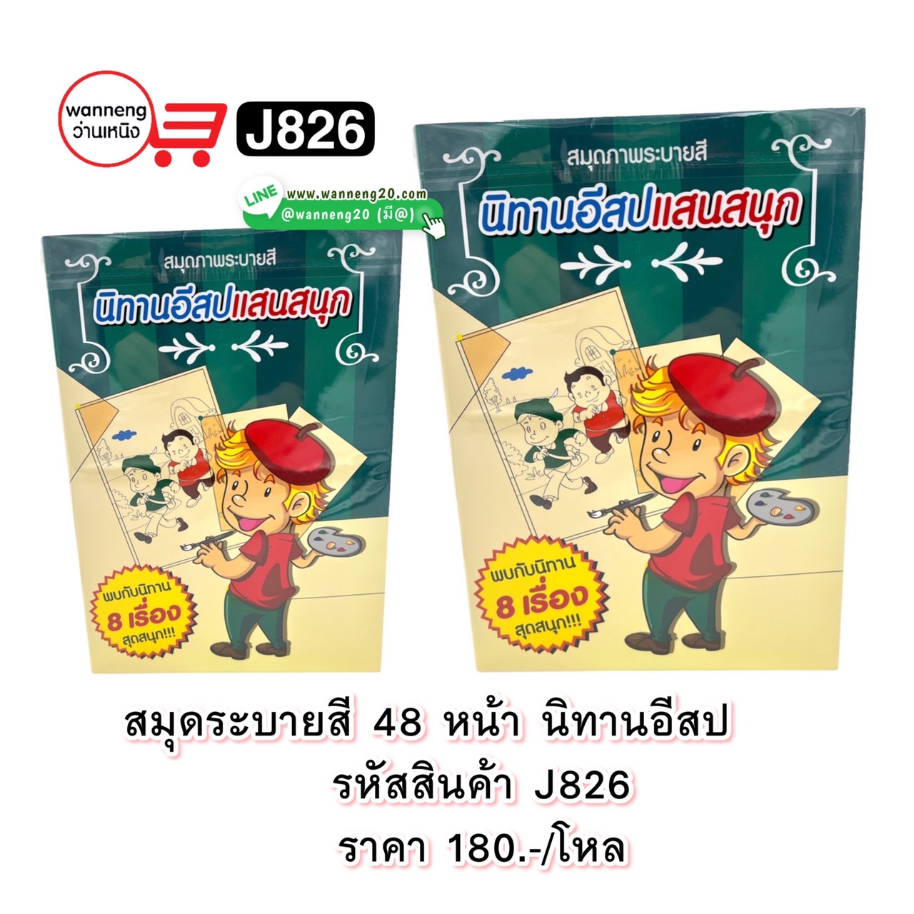 J826 สมุดระบายสี 48 หน้า นิทานอีสป 1 โหล