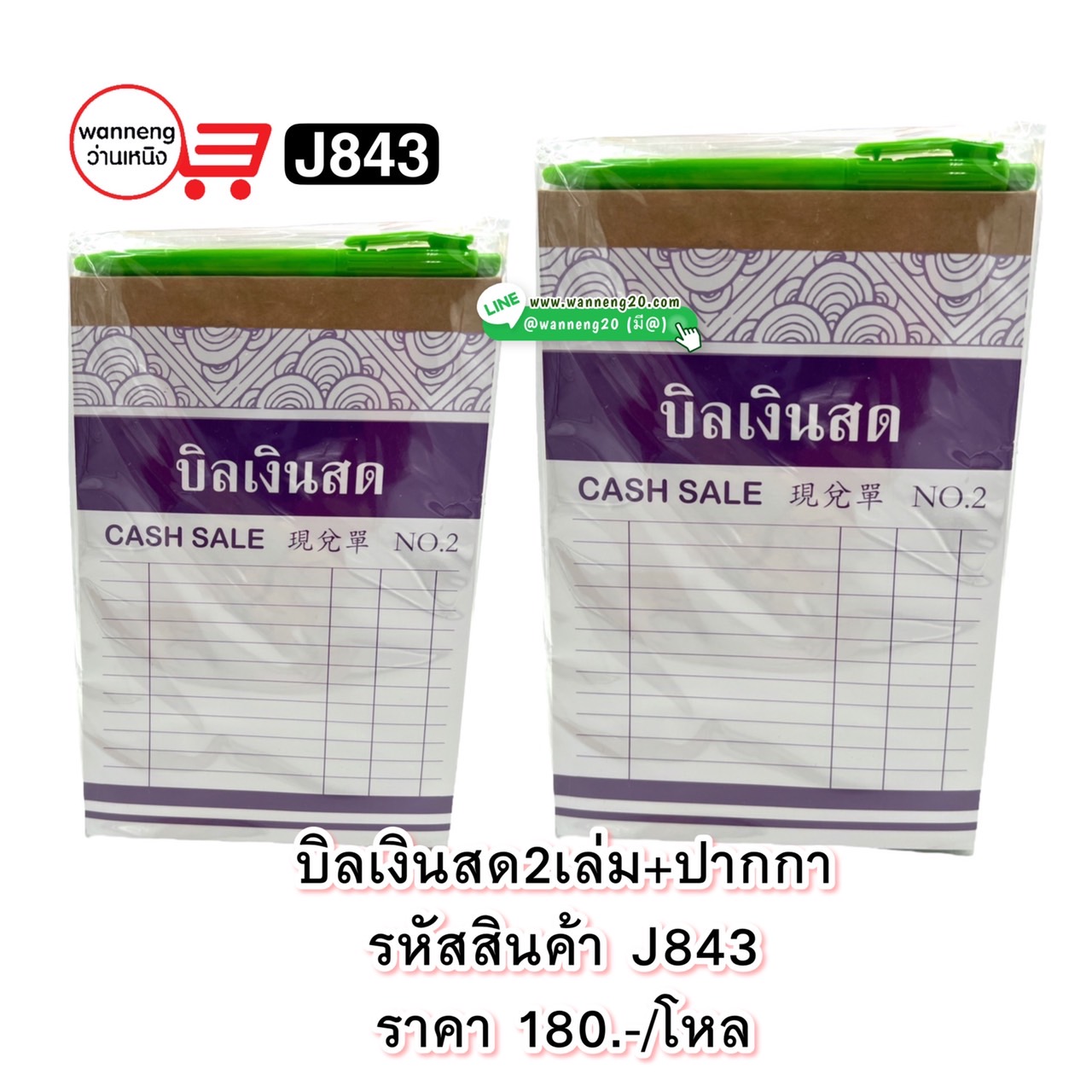J843 บิลเงินสด2เล่ม +ปากกา 1 โหล