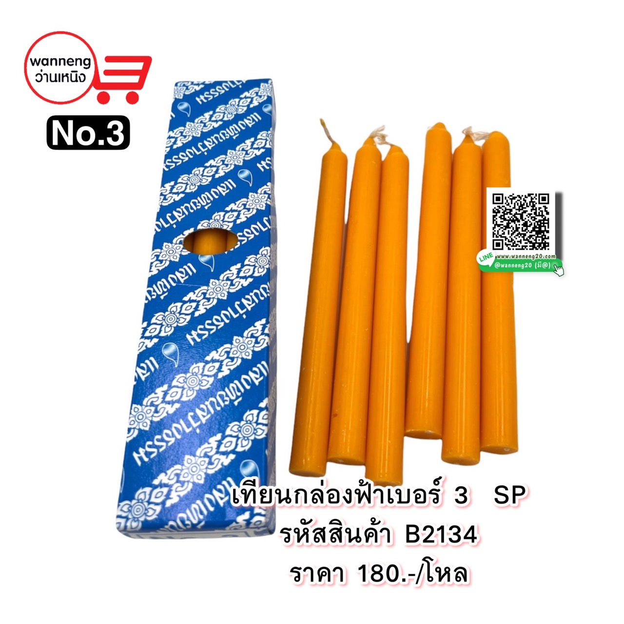 B2134 เทียนกล่องฟ้าเบอร์ 3 SP 1 โหล