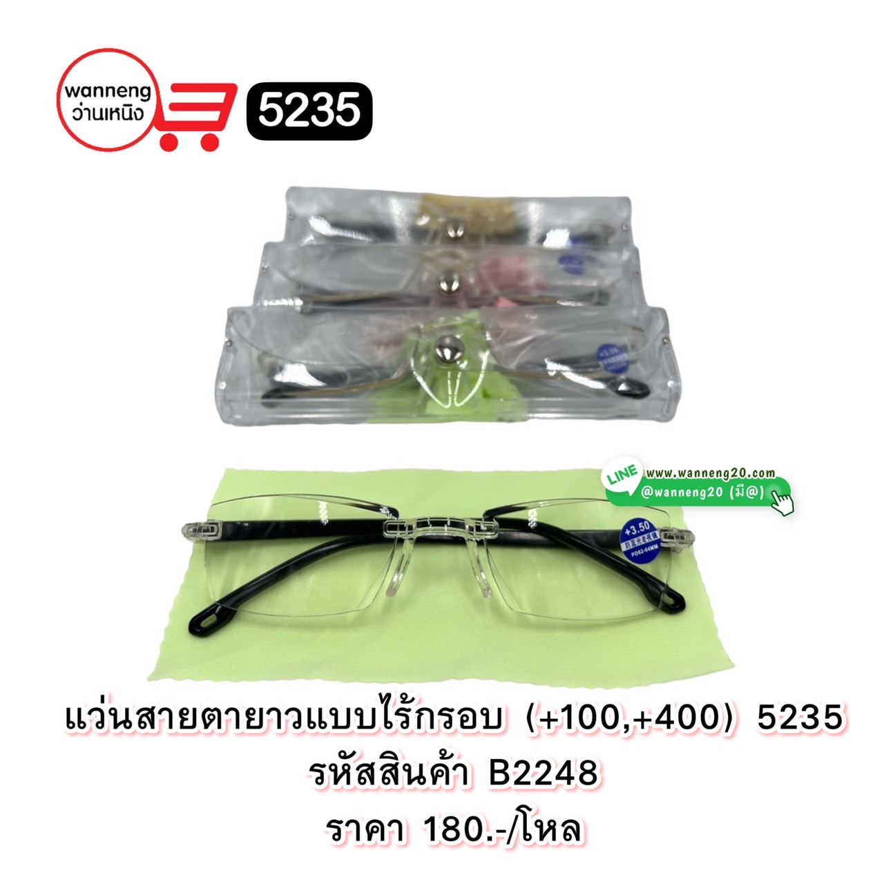B2248 แว่นสายตายาวแบบไร้กรอบ (+100 , +400 ) 5235 1 โหล