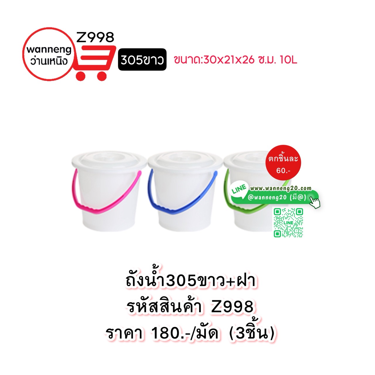 Z998 ถังน้ำ 305 ขาว+ฝา 1 มัด 3 ชิ้น