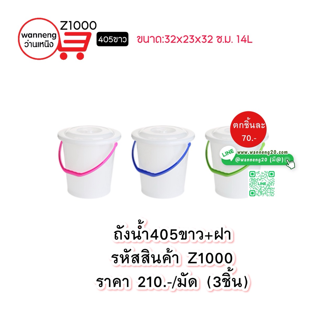 Z1000 ถังน้ำ 405 ขาว+ฝา 1 มัด 3 ชิ้น
