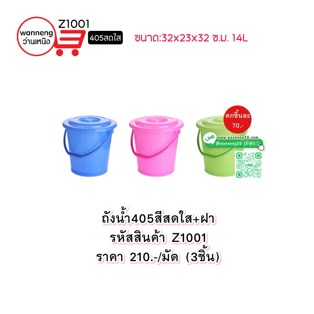 Z1001 ถังน้ำ 405 สีสดใส+ฝา 1 มัด 3 ชิ้น