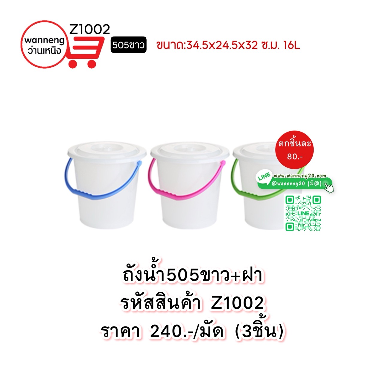 Z1002 ถังน้ำ 505 ขาว+ฝา 1 มัด 3 ชิ้น