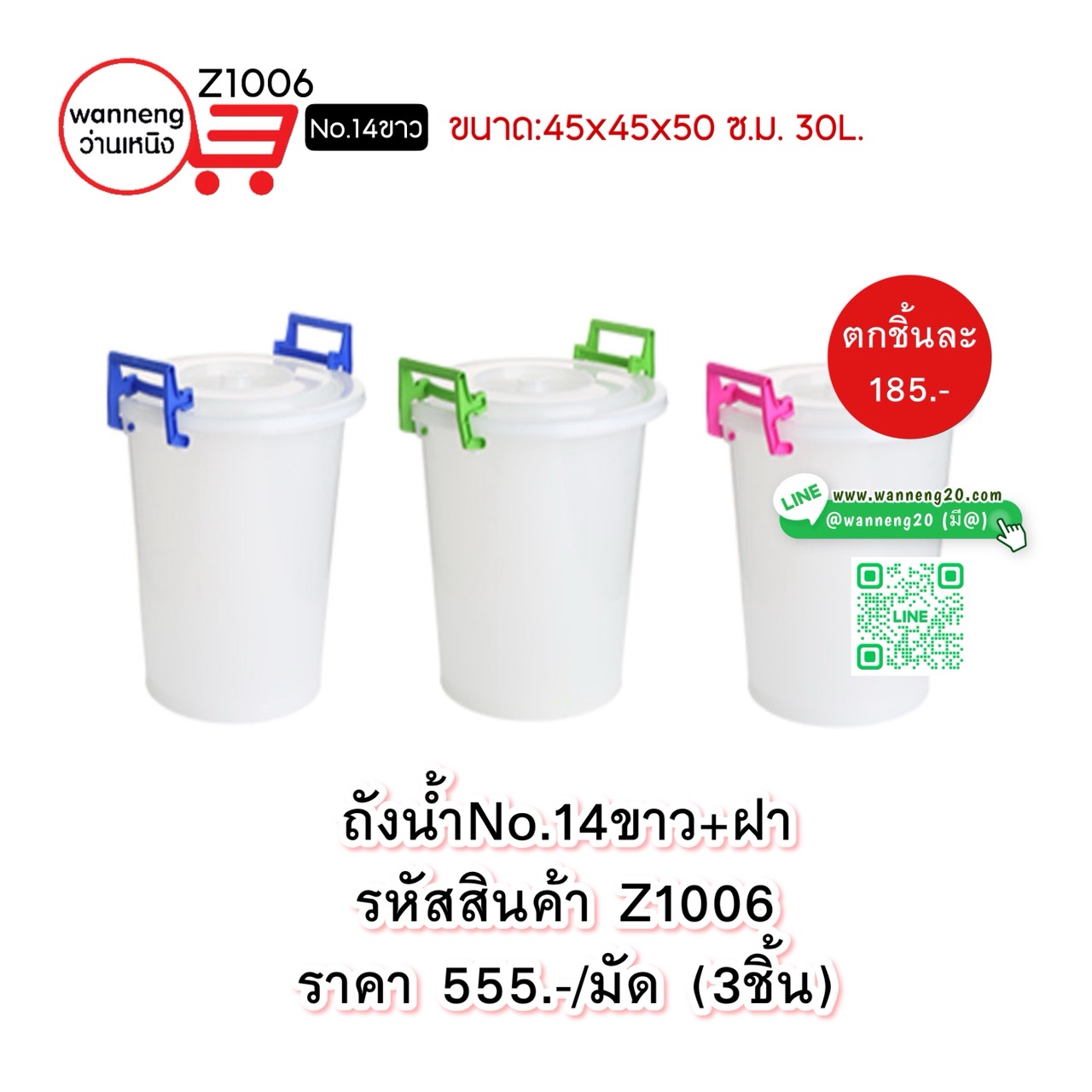 Z1006 ถังน้ำ No.14 ขาว+ฝา 1 มัด 3 ชิ้น