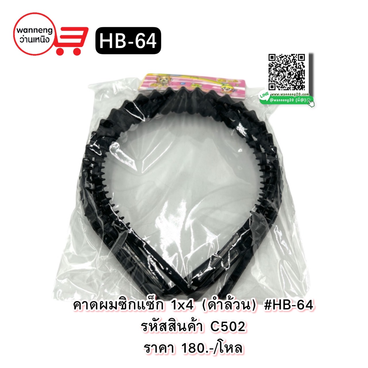 C502 คาดผมซิกแซ็ก 1x4 (ดำล้วน) #HB-64 1 โหล