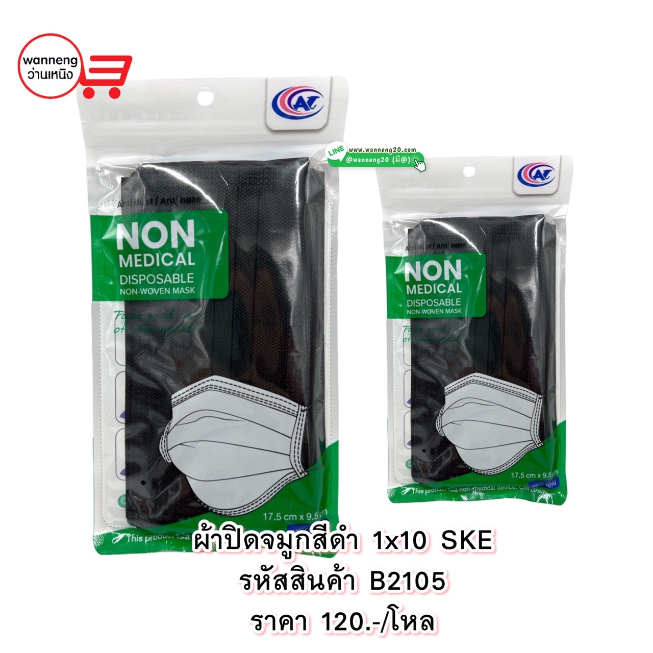 B2105 ผ้าปิดจมูกสีดำ 1x10 SKE 1 โหล