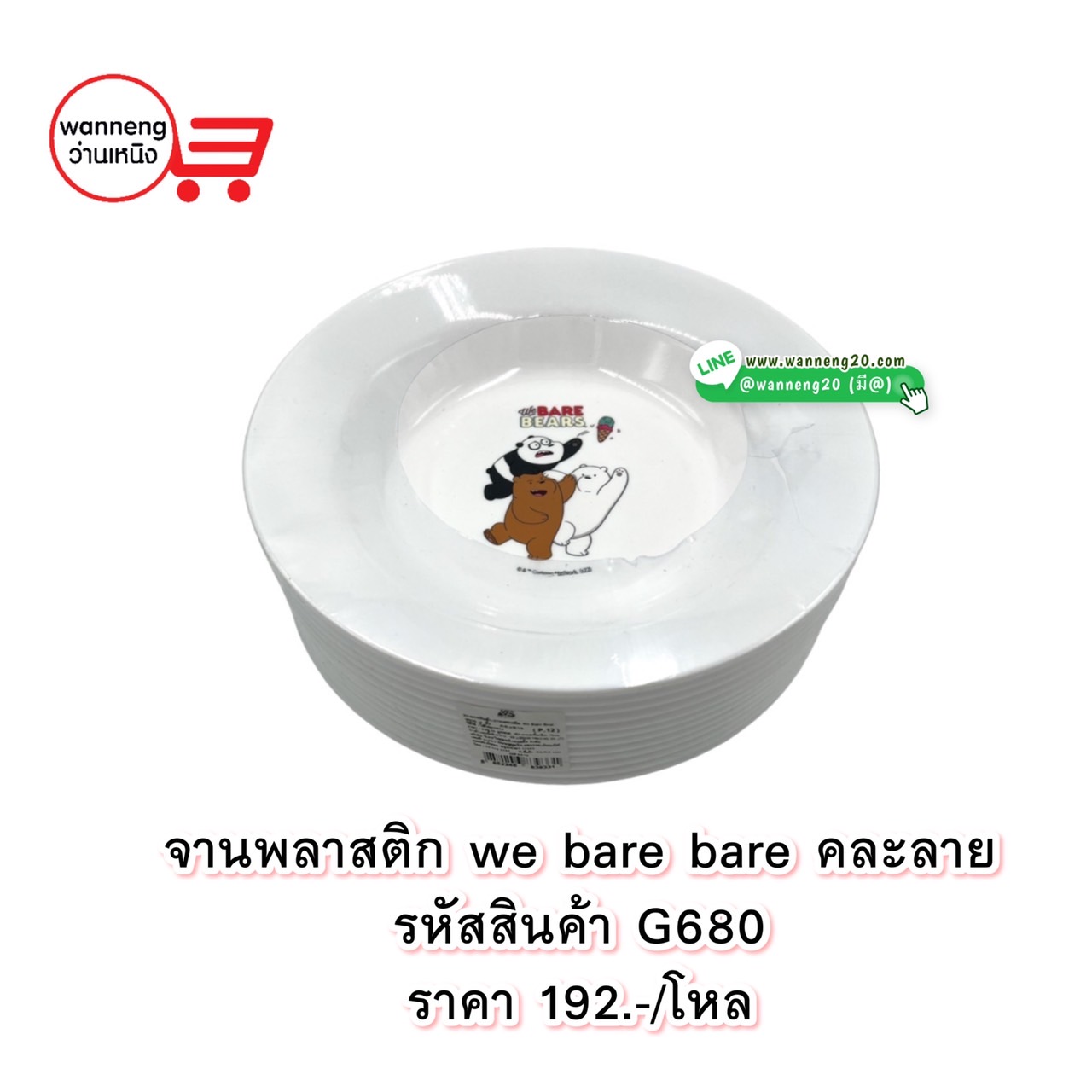 G680 จานพลาสติก We Bare Bear คละลาย 1 โหล