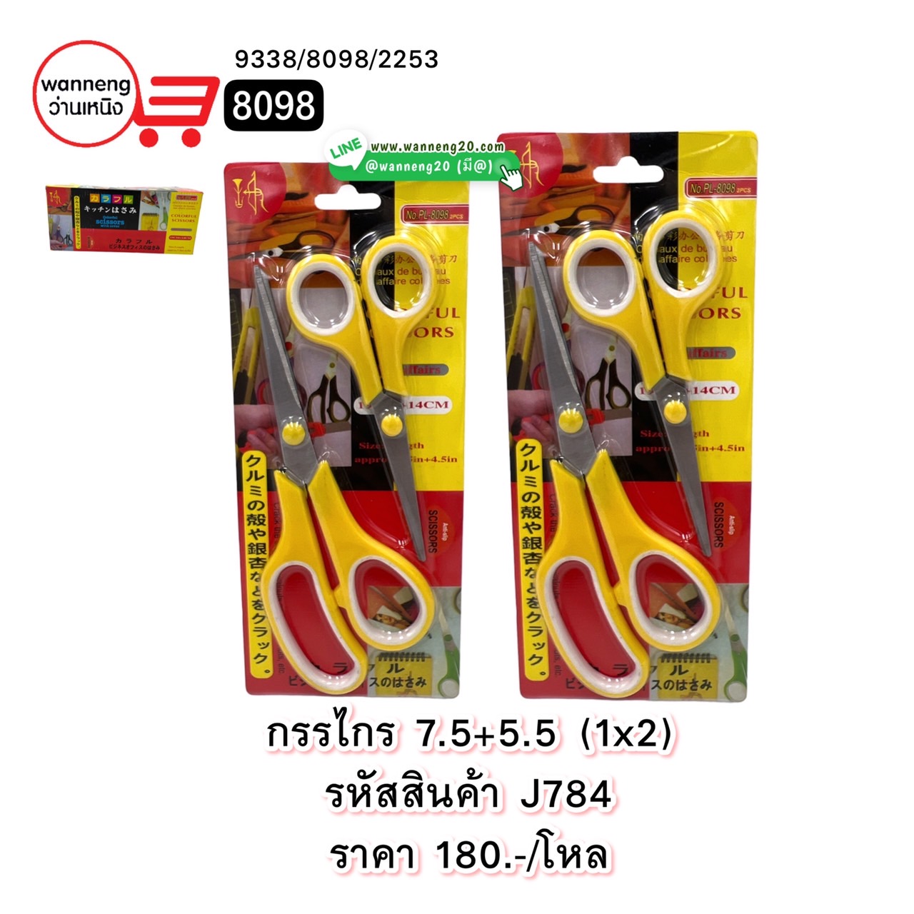 J784 กรรไกร7.5+5.5 (1x2) 9338 1 โหล