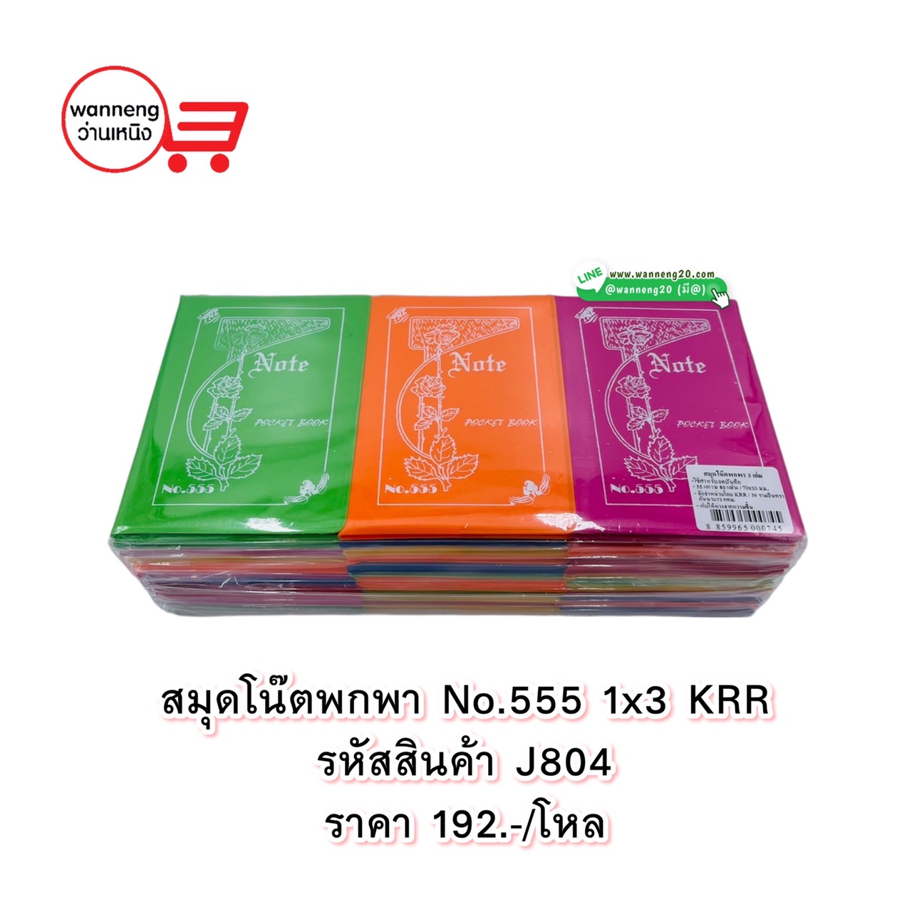J804 สมุดโน๊ตพกพา No.555 1x3 KRR 1 โหล