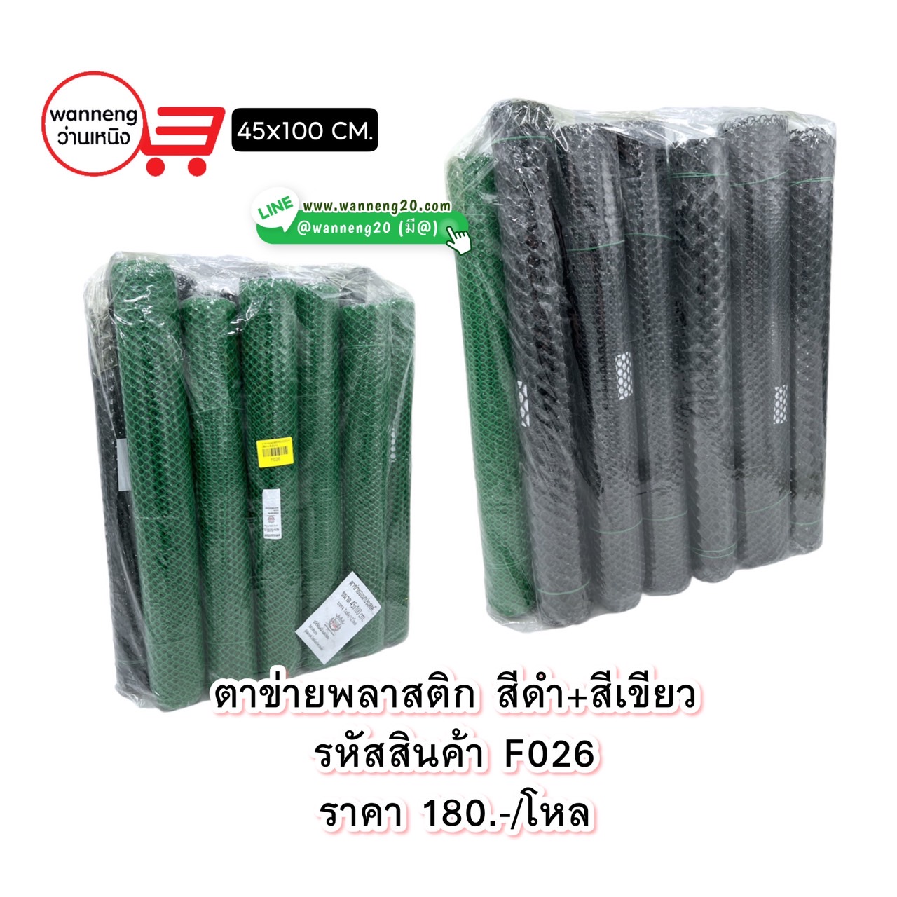 F026 ตาข่ายพลาสติก 45x100 cm. สีดำ + สีเขียว 1 โหล