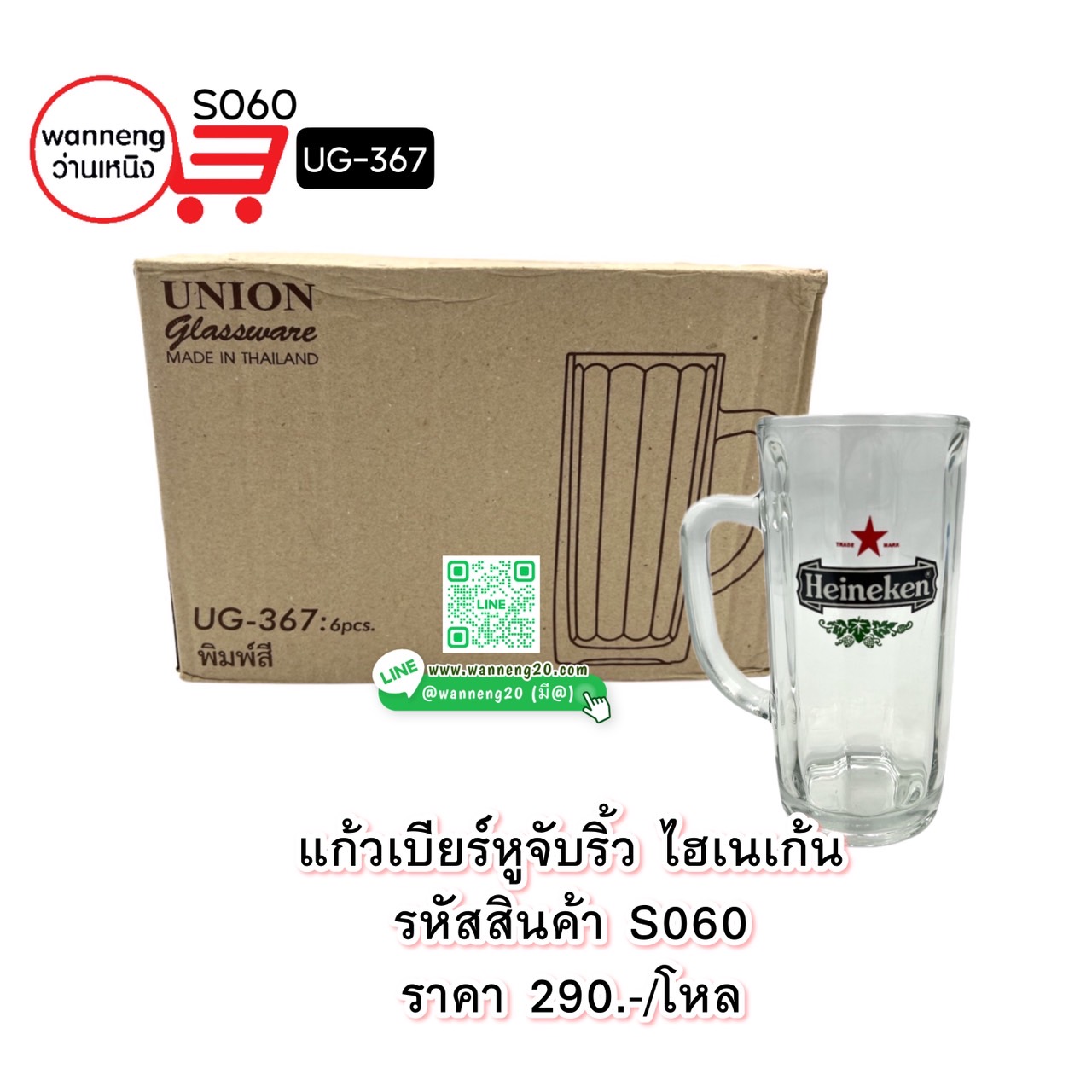 S060 แก้วเบียร์หูจับ (ไฮเนเก้น) UG-367 1 โหล